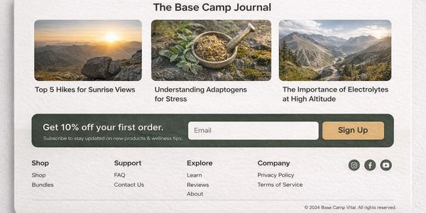 Base Camp Vital is built for people who want to feel better in real life — more energy, steadier moods, better sleep, and healthier routines you can actually stick to. We mix outdoor-inspired wellness with simple daily habits so you don’t have to be an athlete or a “perfect eater” to make progress. Think of us like your base camp: a steady starting point you can return to when life gets busy.